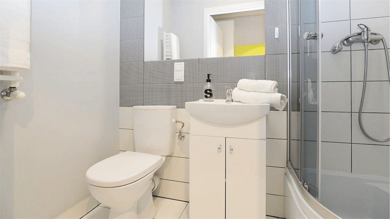 Twój pokój to około 16 m² w pełni wyposażonej przestrzeni, zamykanej na indywidualny klucz. Znajdziesz tu biurko z krzesłem, pojemną szafę, praktyczne szafki wiszące oraz rozkładaną sofę lub wygodne łóżko – wszystko, czego potrzebujesz, by spokojnie uczyć się, pracować i odpoczywać. Dodatkowym atutem jest Twoja własna, prywatna łazienka z prysznicem – pełna wygoda bez kolejek i dzielenia się przestrzenią.
