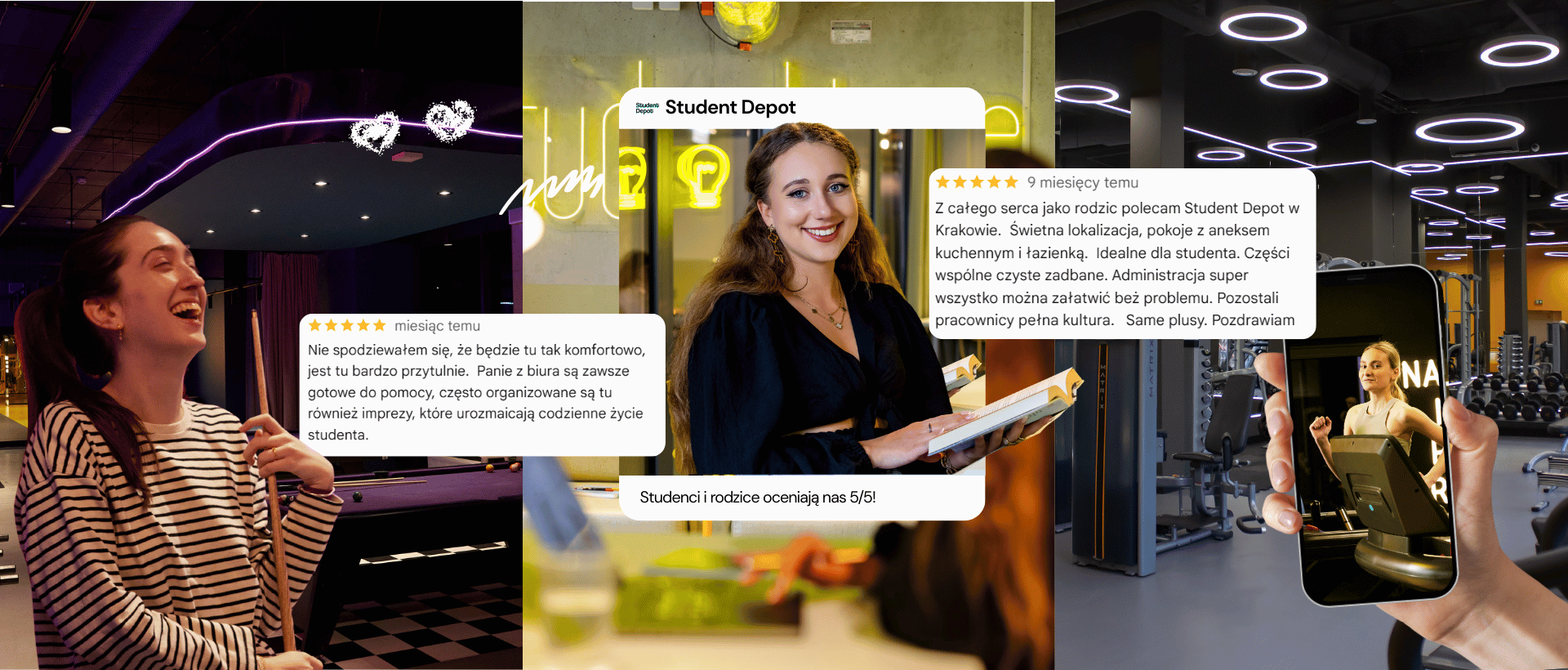 Każda pozytywna opinia pojawiająca się w wyszukiwarce Google jest dla nas ogromnym powodem do radości, natomiast wszelkie krytyczne, ale konstruktywne, uwagi traktujemy jako cenną wskazówkę i motywację do dalszego doskonalenia jakości naszych akademików oraz obsługi.